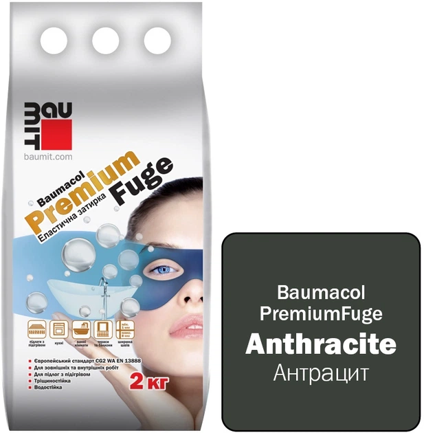 Фуга (затирка для швів) однокомпонентна цементна для плитки Baumit PremiumFuge Anthracite Антрацит клас CG2 2 кг (5945752003