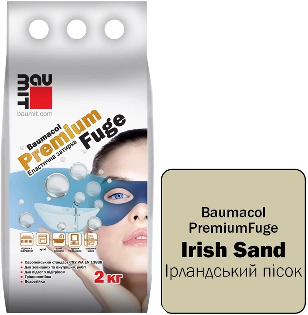 Фуга (затирка для швів) однокомпонентна цементна для плитки Baumit PremiumFuge Irish Sand Ірландський пісок клас CG2 2 кг (5