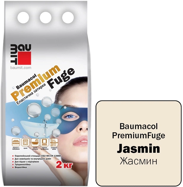 Фуга (затирка для швів) цементна однокомпонентна для плитки Baumit PremiumFuge Jasmin Жасмін клас СG2 2 кг (5945752003655)