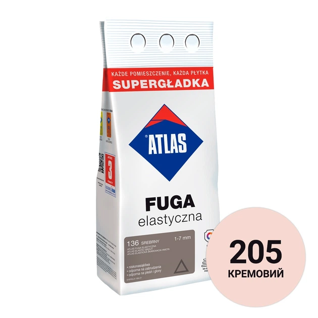 Фуга для плитки еластична ATLAS ELASTIC GROUT 1-7 мм 205 кремовий 2 кг