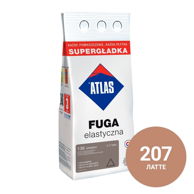 Фуга для плитки еластична ATLAS ELASTIC GROUT 1-7 мм 202 попелястий 2 кг