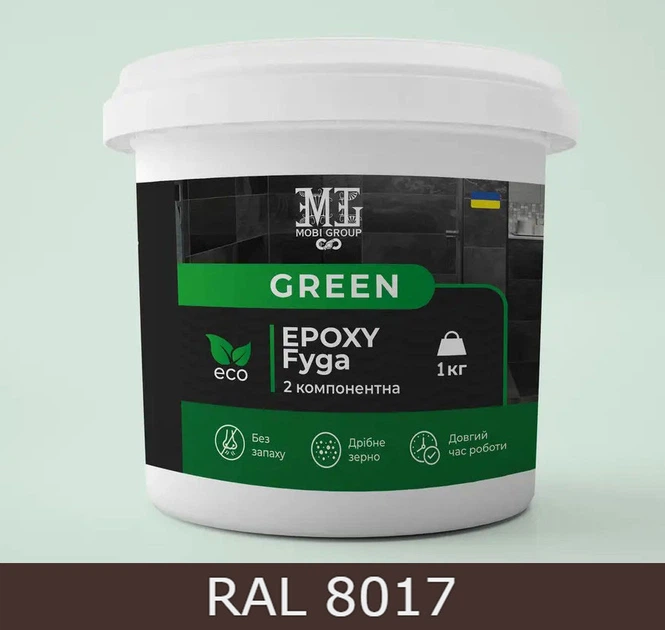 Епоксидна фуга для плитки Green Epoxy Fyga 1кг (легко змивається, дрібне зерно) Шоколадно-коричневий RAL 8017
