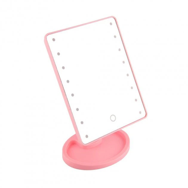 Дзеркало для макіяжу з 16 LED підсвічуванням Mirror White, косметичне дзеркало з підсвічуванням. Колір: рожевий