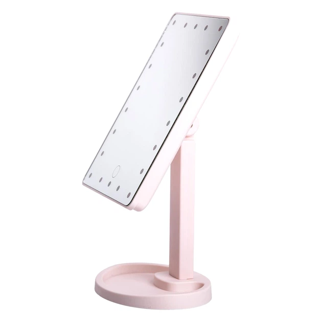 Настільне дзеркало з підсвічуванням 22 LED прямокутне для макіяжу та догляду за шкірою рожеве USB (524392)