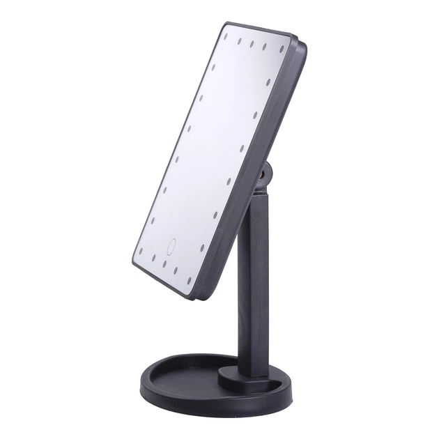 Настільне дзеркало з підсвічуванням 22 LED чорне прямокутне для макіяжу на ніжці USB для жінок і візажистів (524391)