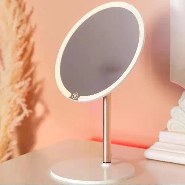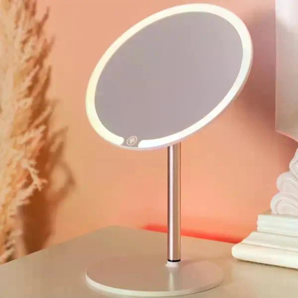 Дзеркало косметичне на ніжці з підсвіткою білий діаметром 21 см 1600 мАг з сенсорним керуванням і регулюванням нахилу