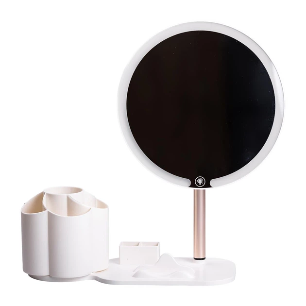 Дзеркало для макіяжу з підсвічуванням кругле настільне 21 см з підставкою Біле HP-10-9AW