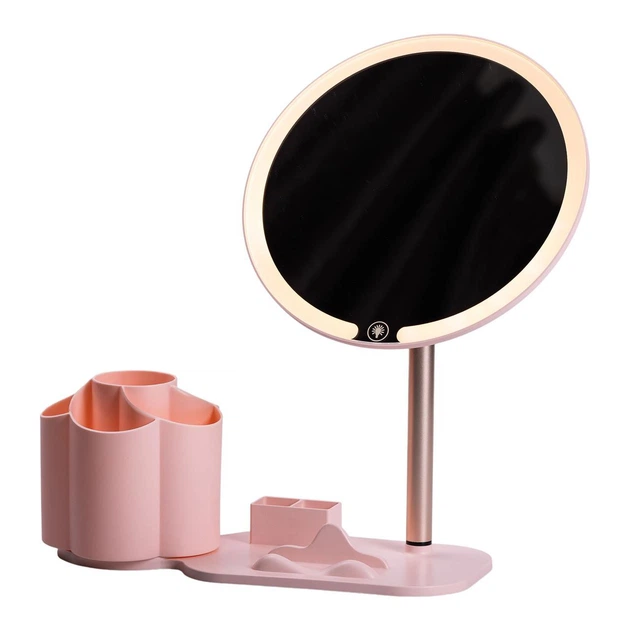 Настільне дзеркало з підсвічуванням 23х18 см для макіяжу на ніжці Рожеве HP-10-6AP (A-033795)