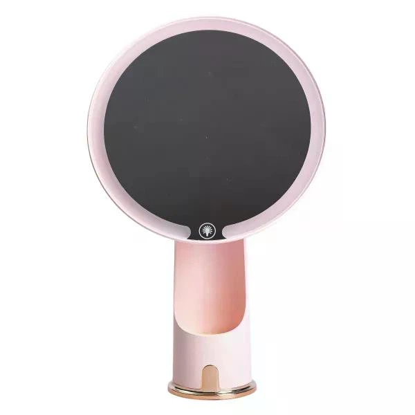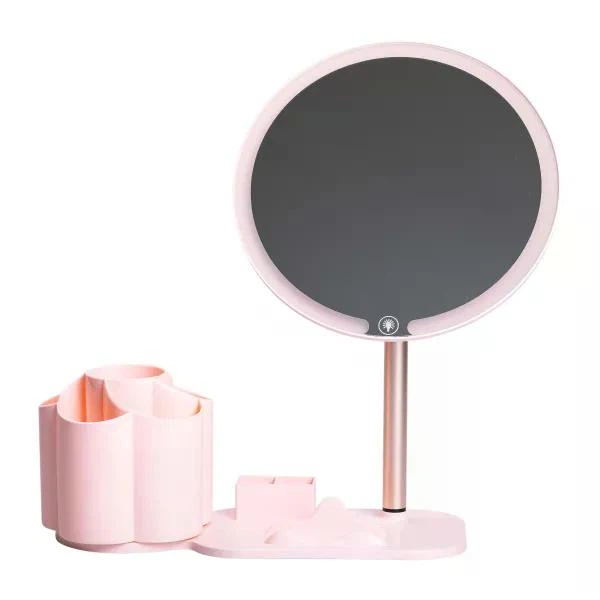 Косметичне дзеркало з LED підсвіткою та органайзером 18,5 см настільне дзеркало для макіяжу і щоденного догляду Рожеве