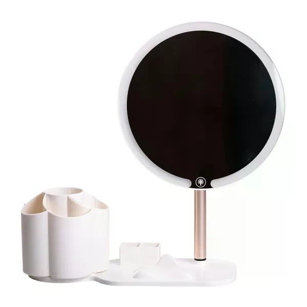 Косметичне дзеркало з LED підсвіткою та органайзером діаметр 18,5 см біле настільне дзеркало для макіяжу щоденного догляду т