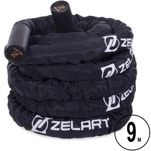 Канат для кросфіту в захисному рукаві Combat Battle Rope Zelart FI-2631-9 9м чорній