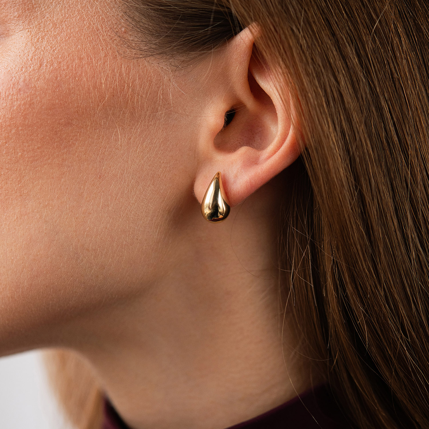 Сережки-пусети "Крапельки" в жовтому золоті Метал: жовте золото 585 " Вставка: немає Середня вага: 2.21 г Розмір: 1.4 см х 1.0 см
