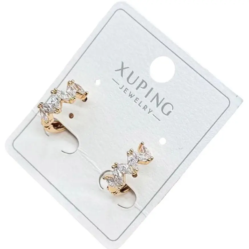 Сережки Xuping оздоблені вигинами з білими фіанітами гіпоалергенне медичне золото