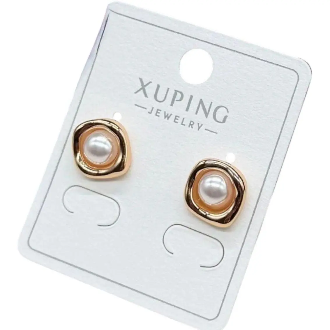Перлові сережки Xuping гіпоалергенні з медичного сплаву під золото