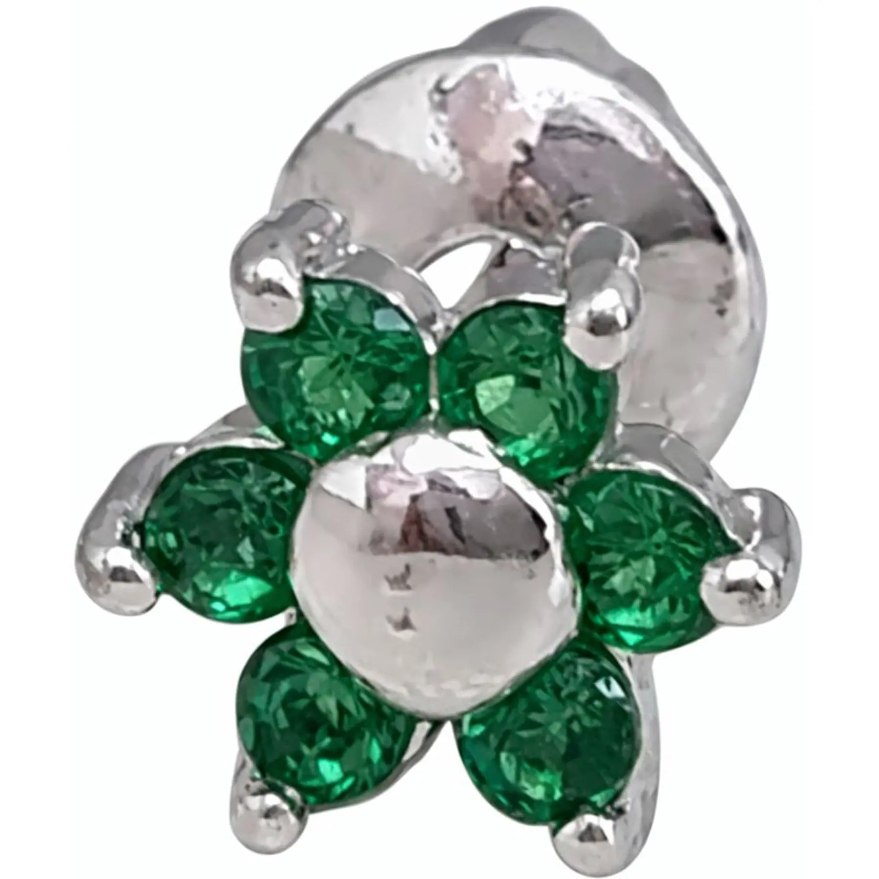 Срібна моносережка пуссета Квітка з фіанітами. 3008.4С Зелений