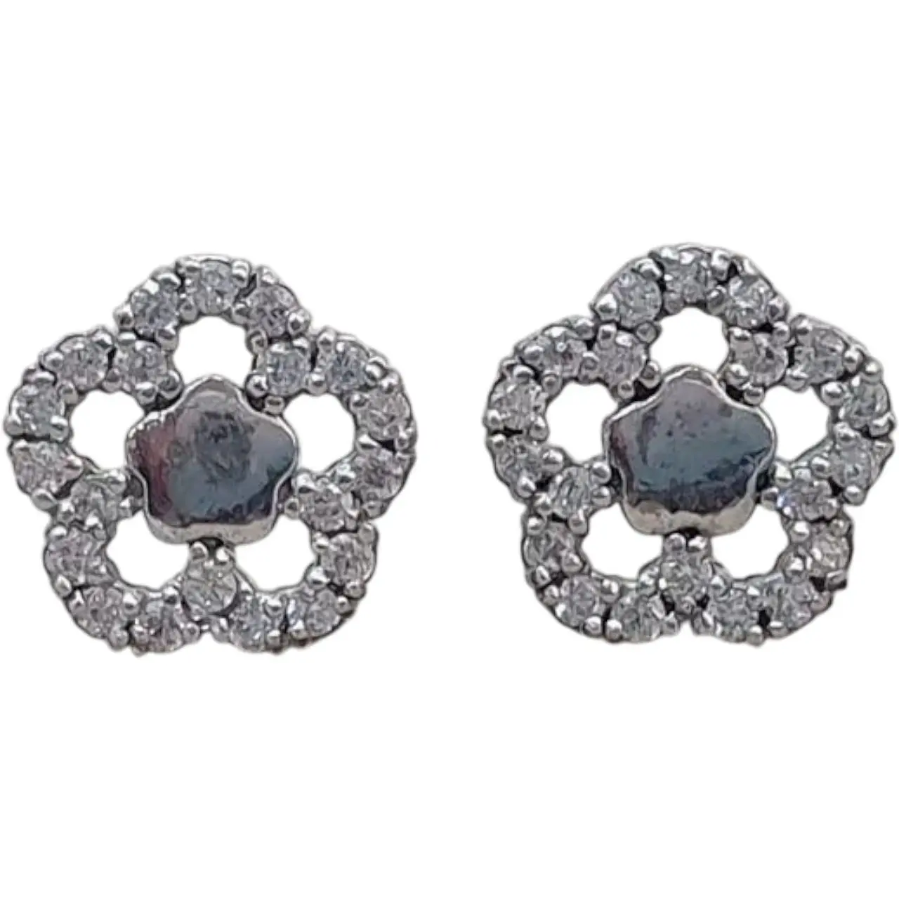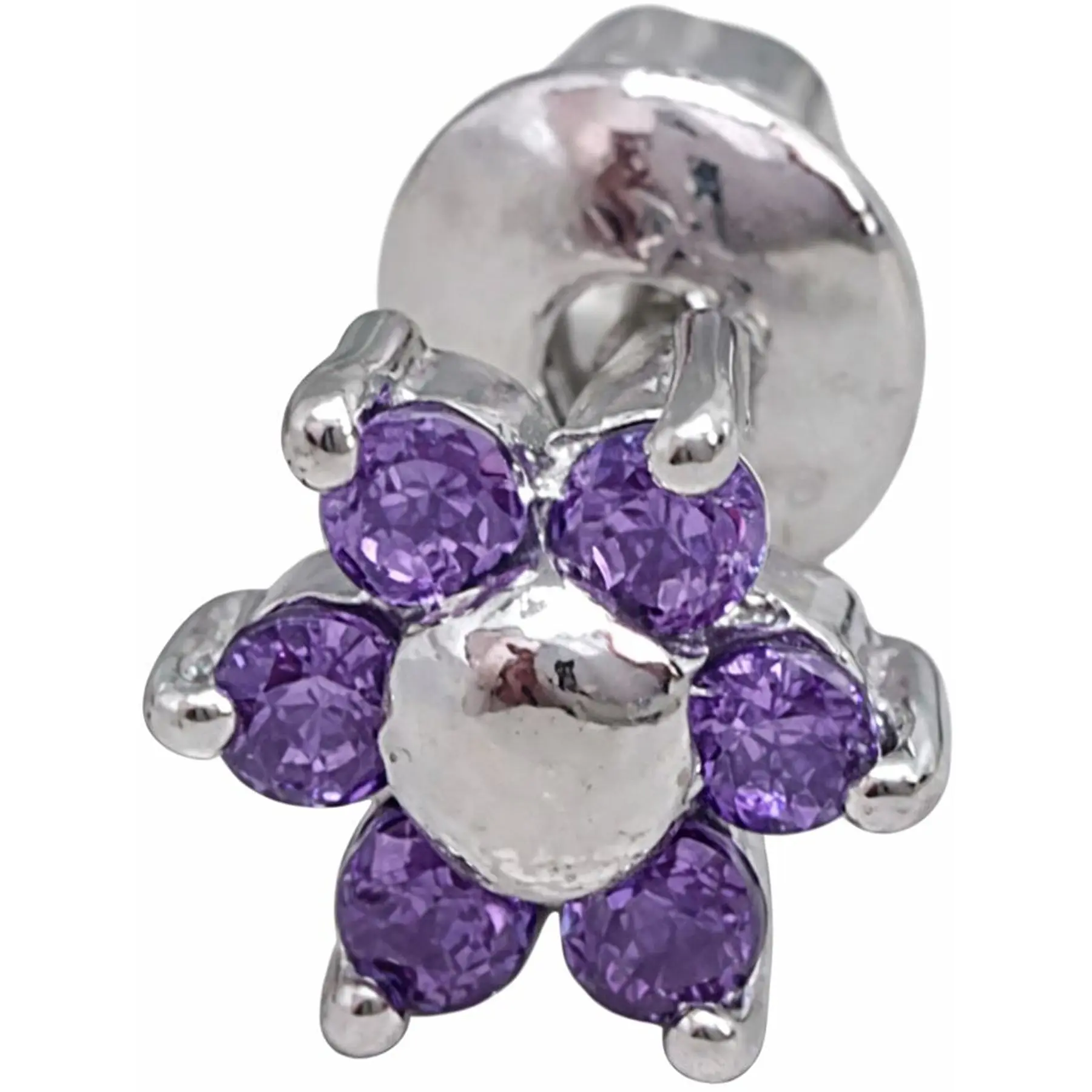 Срібна моносережка пуссета Квітка з фіанітами. 3008.6С Синій