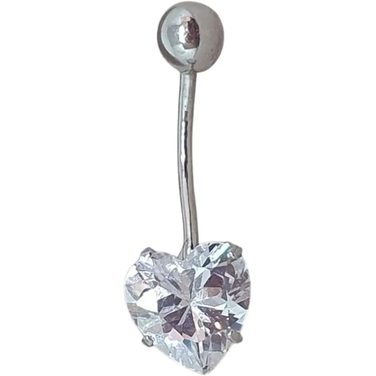 Срібна сережка для пірсингу пупка Ірій Сердечко с фіанітами. 6030