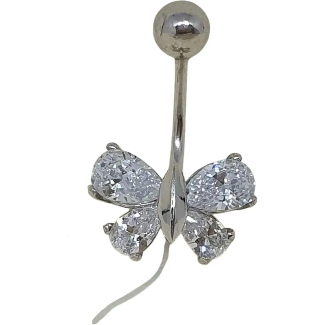 Срібна сережка для пірсингу пупка Ірій з фіанітами. 6006
