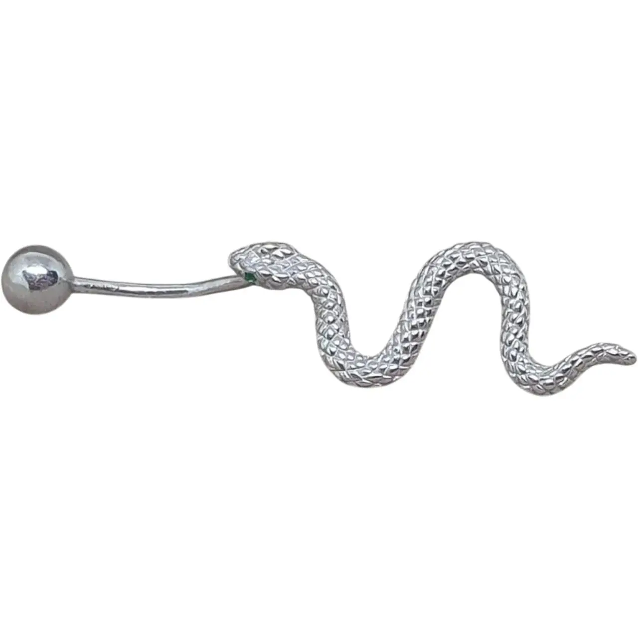 Срібна сережка для пірсингу Ірій Змійка пупка з фіанітами. 6027