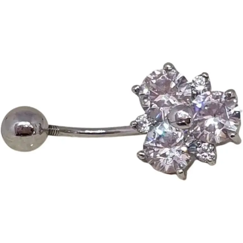Срібна сережка для пірсингу пупка Ірій з фіанітами. 6001