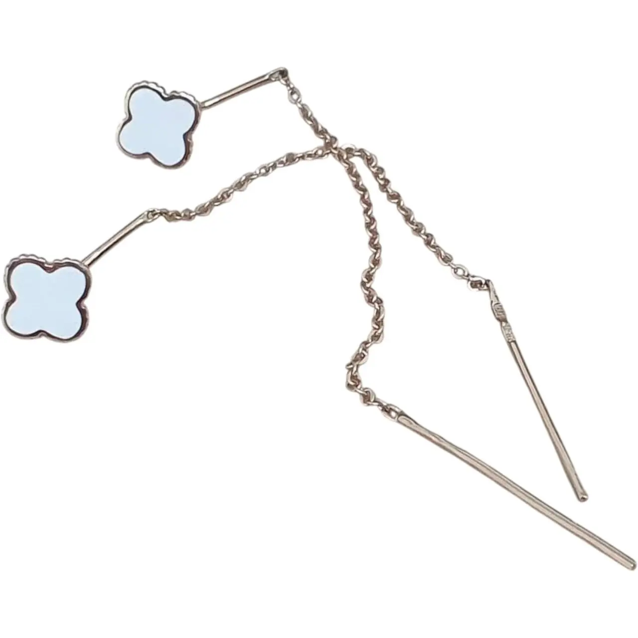 Золоті сережки-протягання Tango Конюшина з емаллю. 400292Е БЕЛ