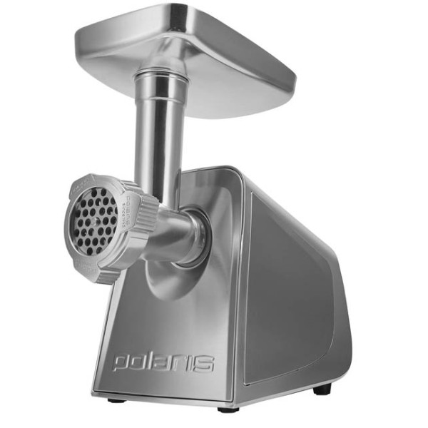 Виробник - POLARIS;Потужність - 2200;Потужність двигуна - більше 2000;Продуктивність - 2.5;Насадки - насадка кеббе, насадка для ковбасок, соковитискач для ягід та томатів, терка, шинкування;Реверс - є;Особливості - захист двигуна від перевантаження, прогумовані ніжки;Матеріал корпуса - метал;Матеріал лотка - метал;Колір - сріблястий;Країна виготовлення - Китай;Комплектація - м'ясорубка, 3 диски