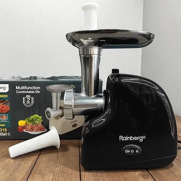 Електром’ясорубка Rainberg RB MultiPro, мясорубка електрична з реверсом, насадками для соку та ковбас, 3800 Вт, чорна (576)