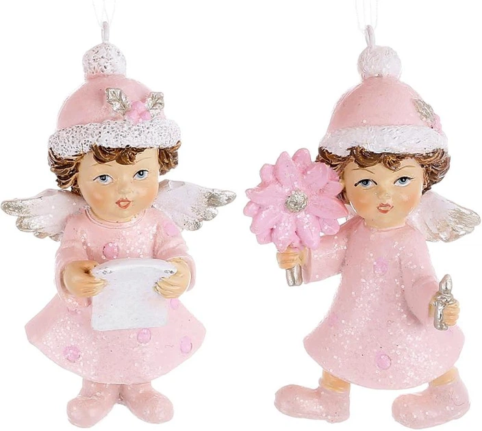 Декоративні підвіски Ангели 12 фігурок полістоун для інтер'єру в рожевому кольорі фігурки для прикраси (567439)