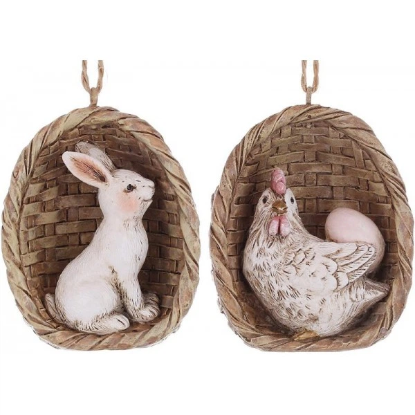 Декоративні підвіски "Кролик та Курочка в кошику" 12 фігурок 7см, полістоун (6485)