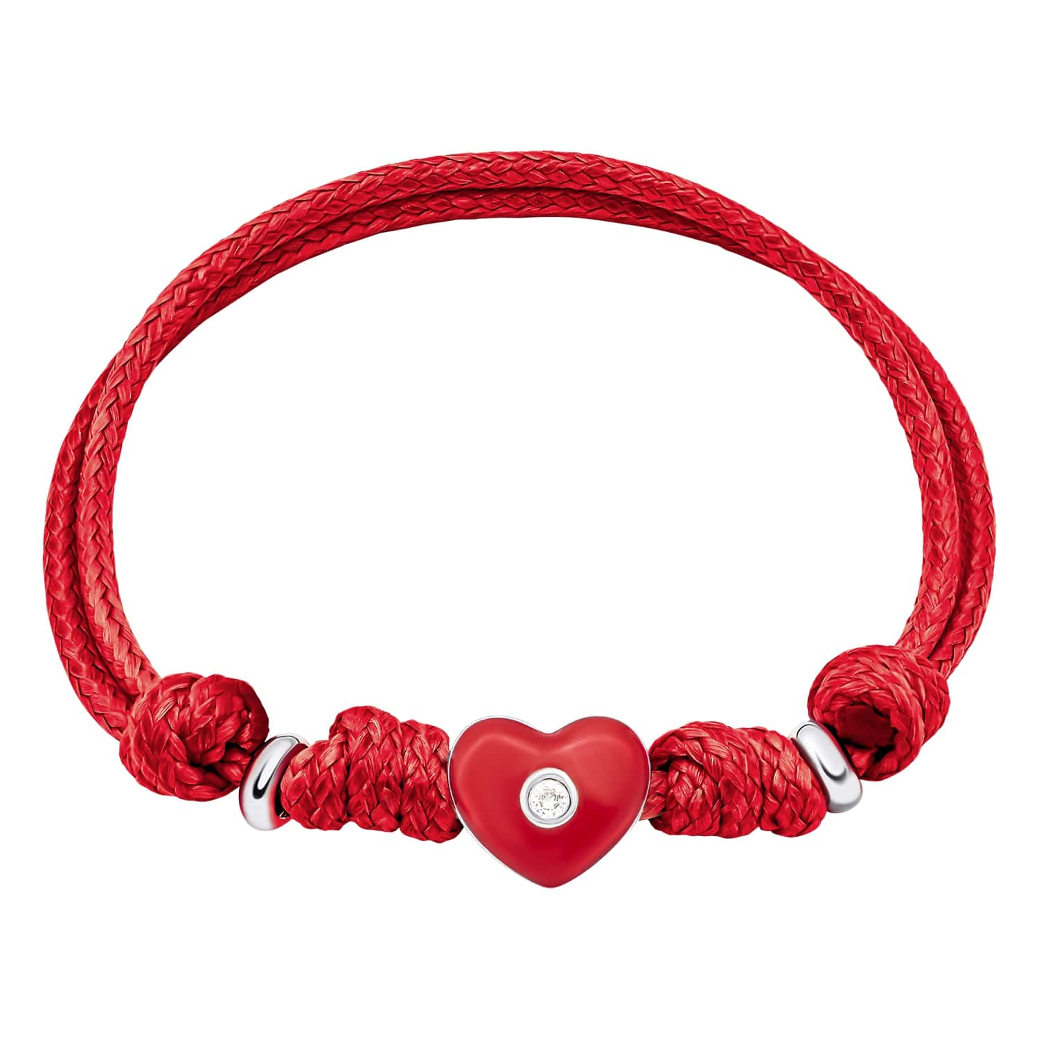 Браслет на шнурку UmaUmi Серденько з червоною емаллю та фіанітом (2210000018884) 2210000018884