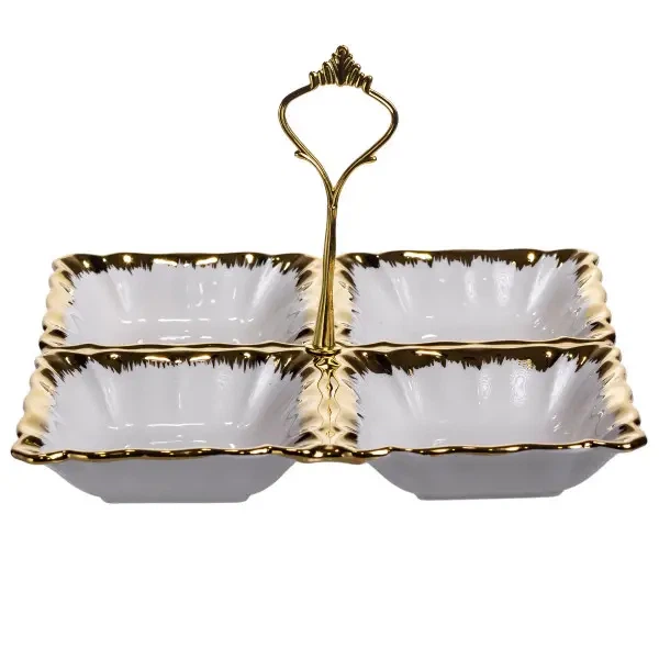 Менажниця Yiwu LC-BYL-101золота порцелянова квадратна на 4 секції 22.5х22.5х3 см (107-80-LC-BYL-101)
