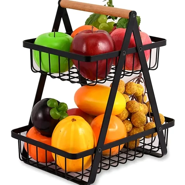 Кошик для фруктів двоярусний 29х27х17см пластиковий із захистом від перегріву терморегулятором чорний