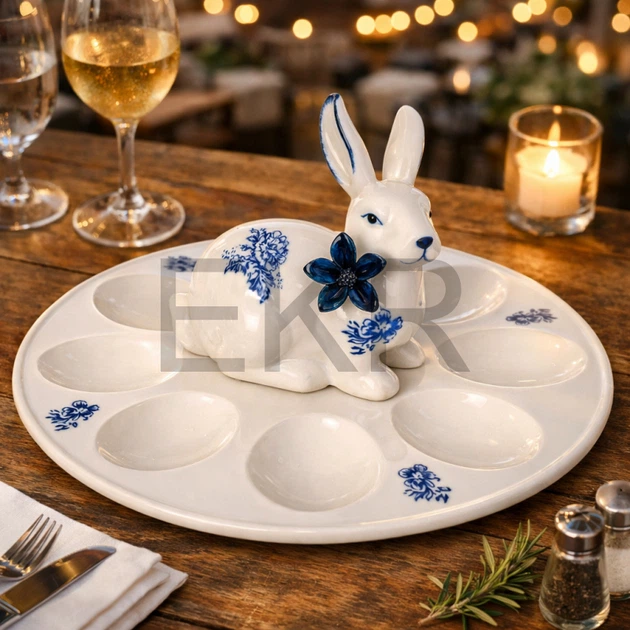 Підставка для яєць керамічна Flora Зайчик з квітами на 5 яєць 33729