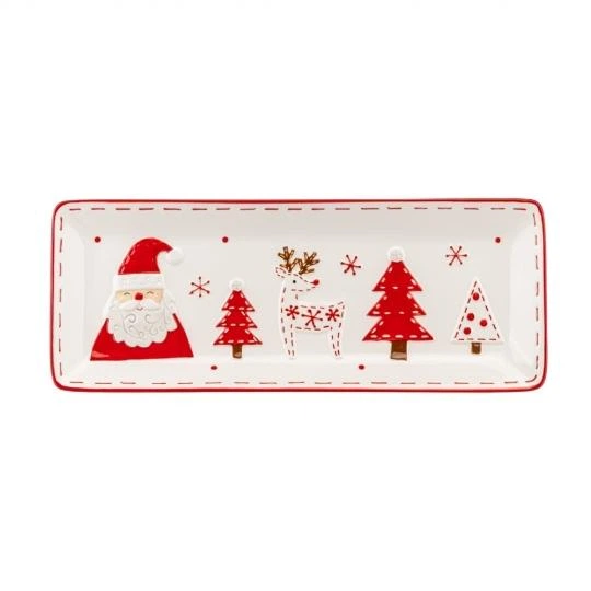 Новорічне блюдо для сервірування Санта Клаус із кераміки прямокутне 41,3х16,1х3,2 см Біле (124-81-6038-002)
