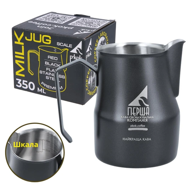 Пітчер Pkok 350 мл зі шкалою (Джаг для молока, молочник) чорний тип Motta