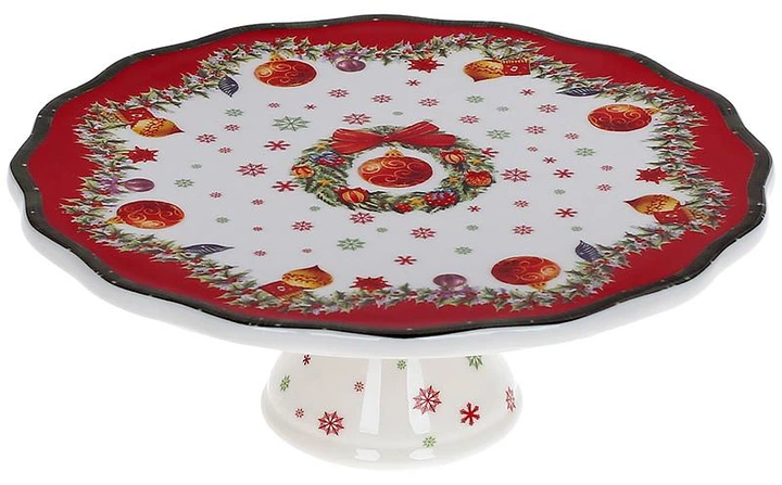 Підставка для торта Різдвяний орнамент порцеляна 20,5 см блюдо для десертів подарункова упаковка (565675)