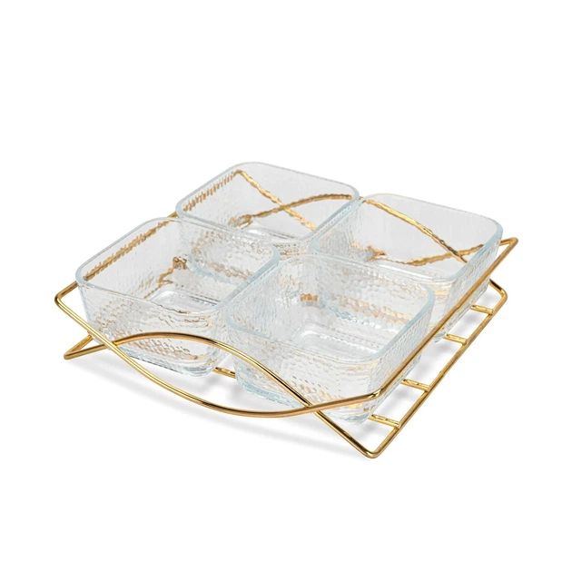 Менажниця серверувальна Fissman зі скла на сталевій підставці 21.5х21х5.8см(16393)