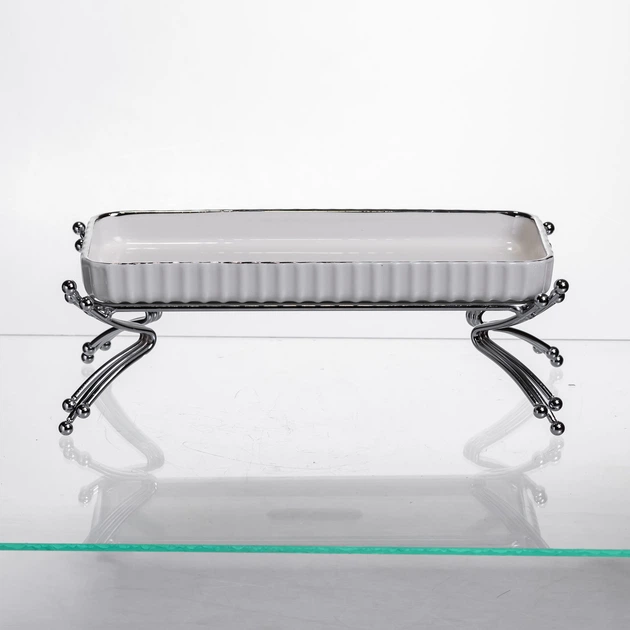 Порцелянове блюдо для сервірування на металевій підставці 37185 (см) блюдо для подачі закусок Білий зі сріблом LB-1566S (A-0