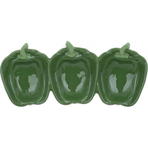 Менажниця керамічна "Pepper" 33х15см, Зелений перець, 3-х секційна (111490)