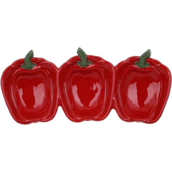 Менажниця керамічна "Pepper" 33х15см, Червоний перець, 3-х секційна (111492)