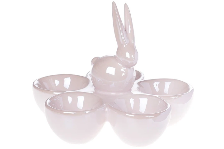 Підставка великодня для 5-ти яєць керамічна Кролик, колір рожевий перламутр