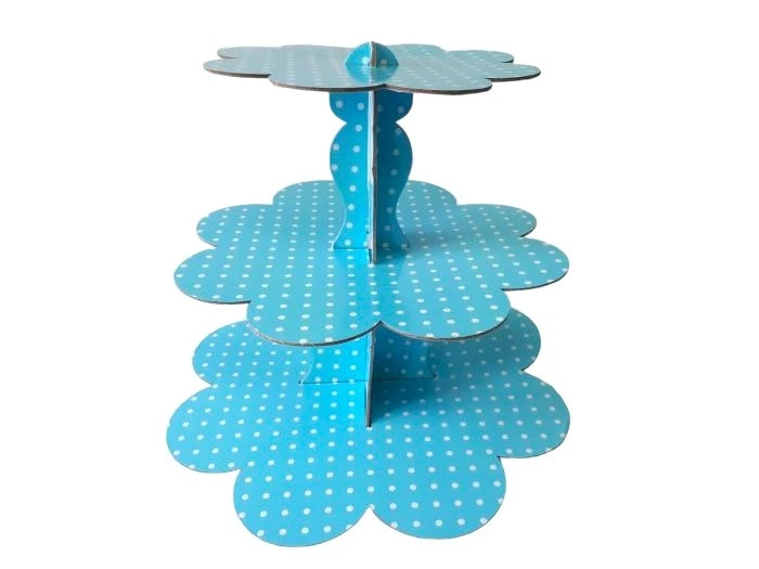 Стійка для капкейків кексів мафінів картонна Підставка для тістечок Етажерка для десертів 3 х ярусна стенд блакитна 15988