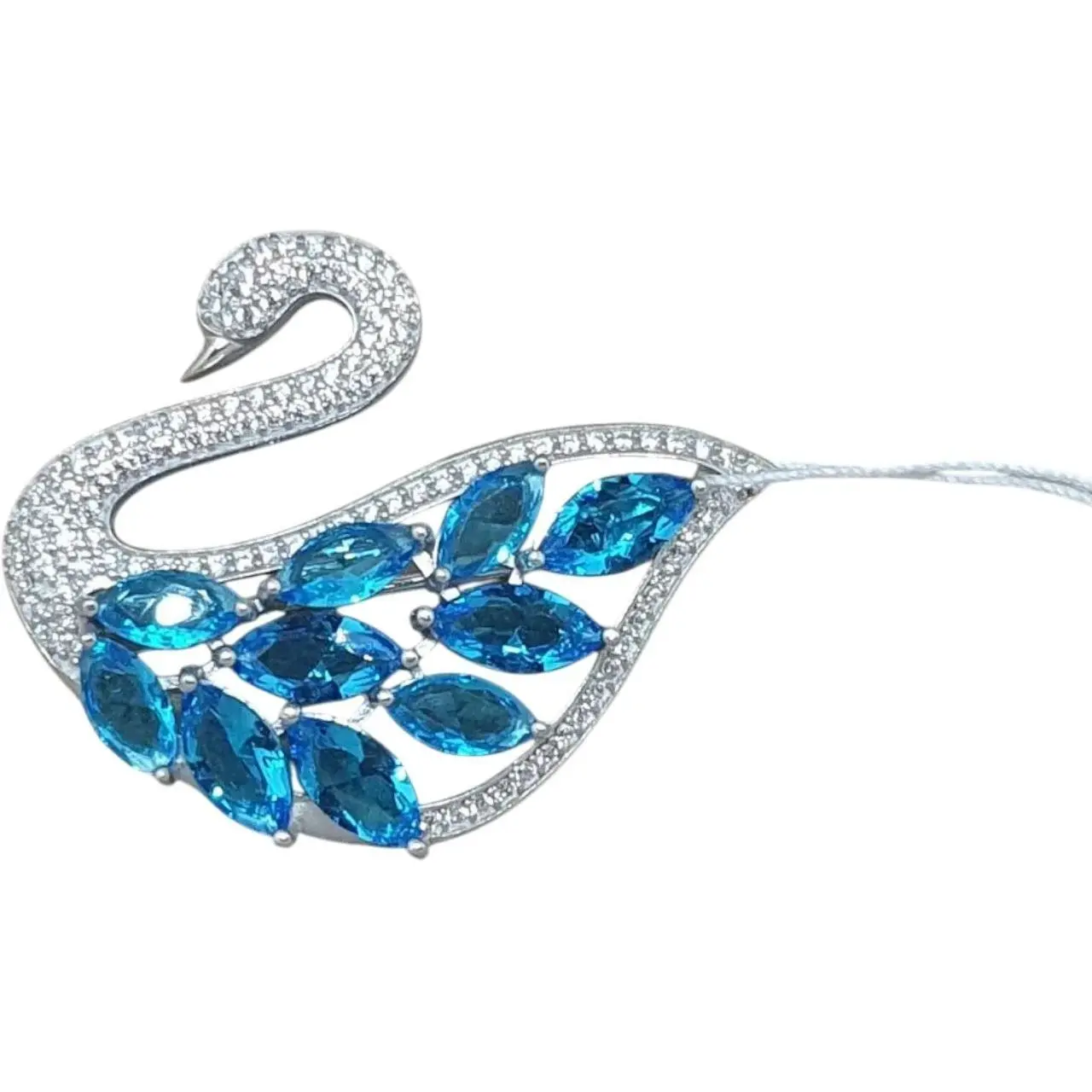 Срібна брошка Ірій Лебідь з фіанітами. 9540
