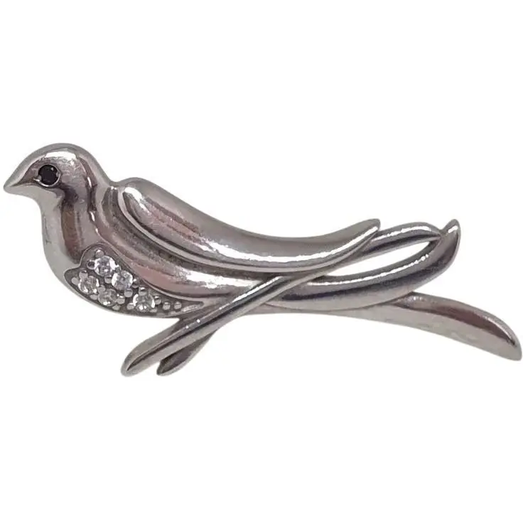 Срібна брошка Ірій Пташка з фіанітами. 9518