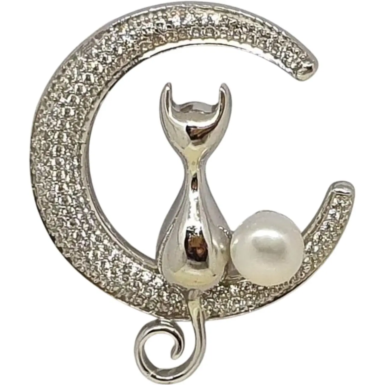 Срібна брошка Dear Кішка з перлиною. 9011.1С