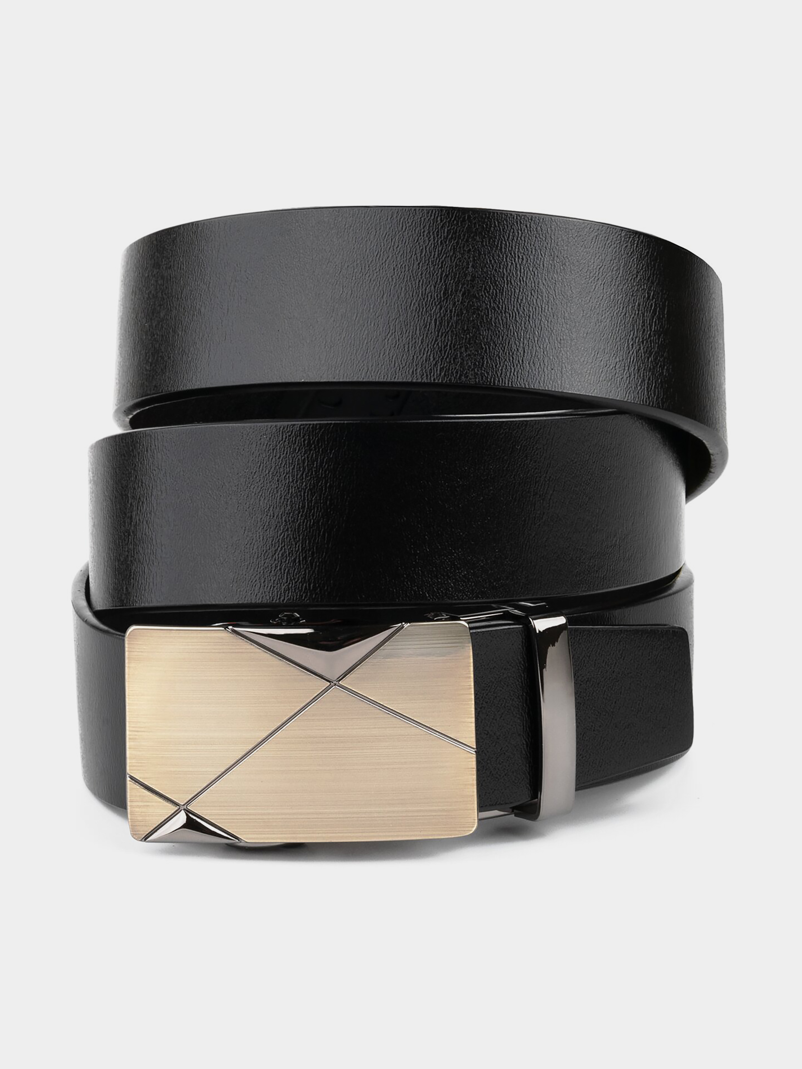 Ремінь Vintage Чоловічий з пряжкою автомат з чорною вставкою Чорний (20254) 20254