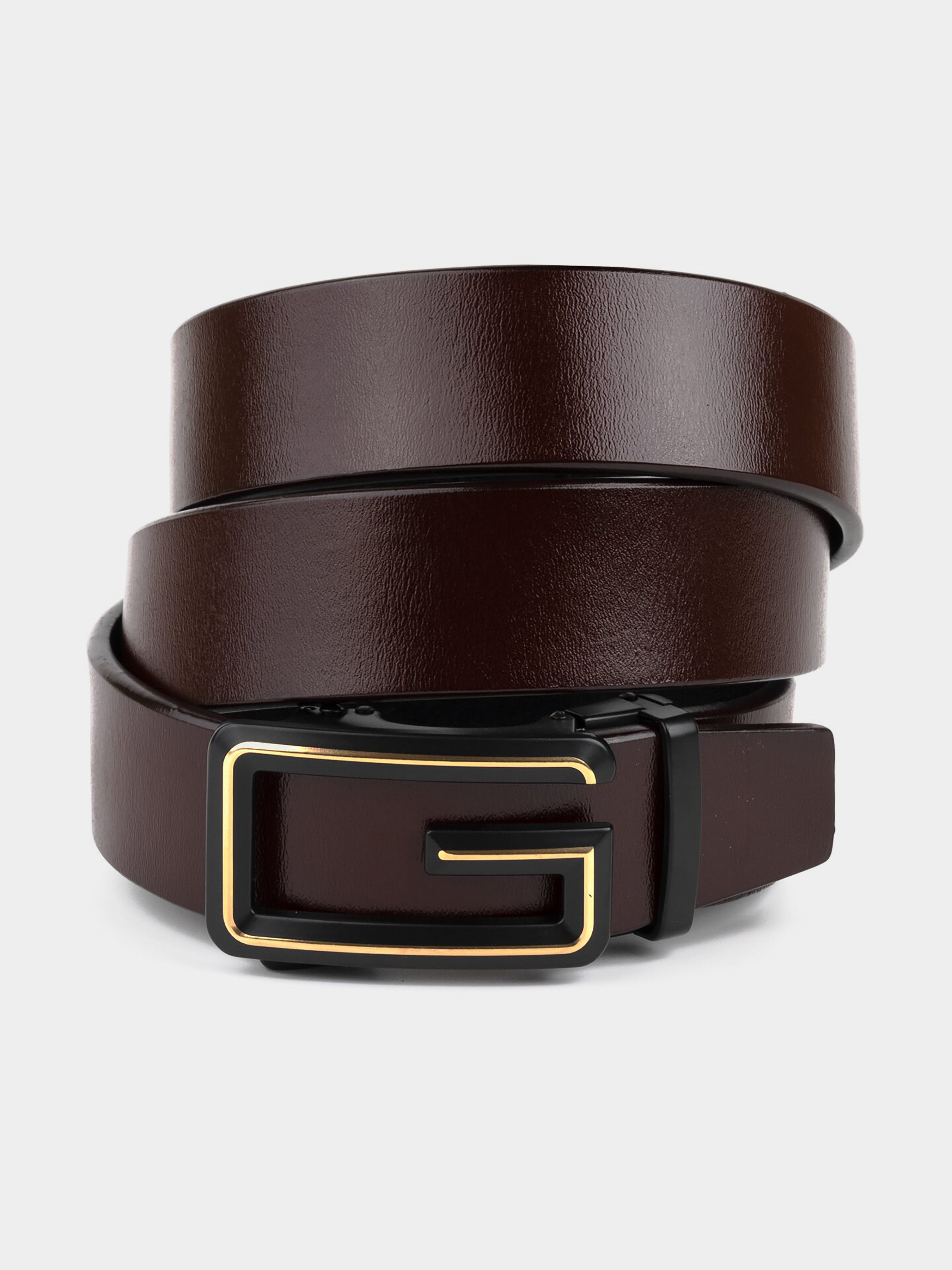 Ремінь Vintage Чоловічий із зернистою пряжкою автомат Коричневий (20273) 20273