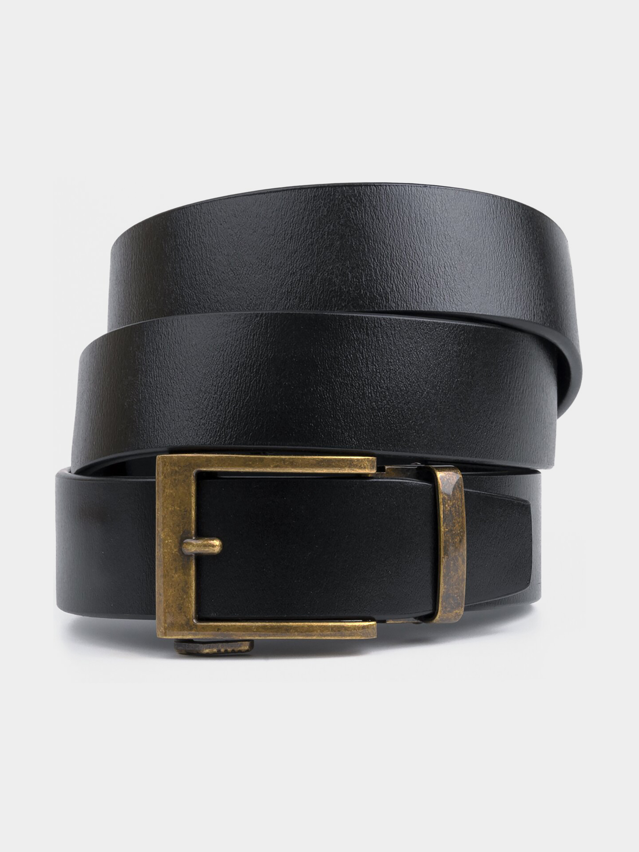 Ремінь Vintage З натуральної шкіри з ретро латунною пряжкою Чорний (20215) 20215