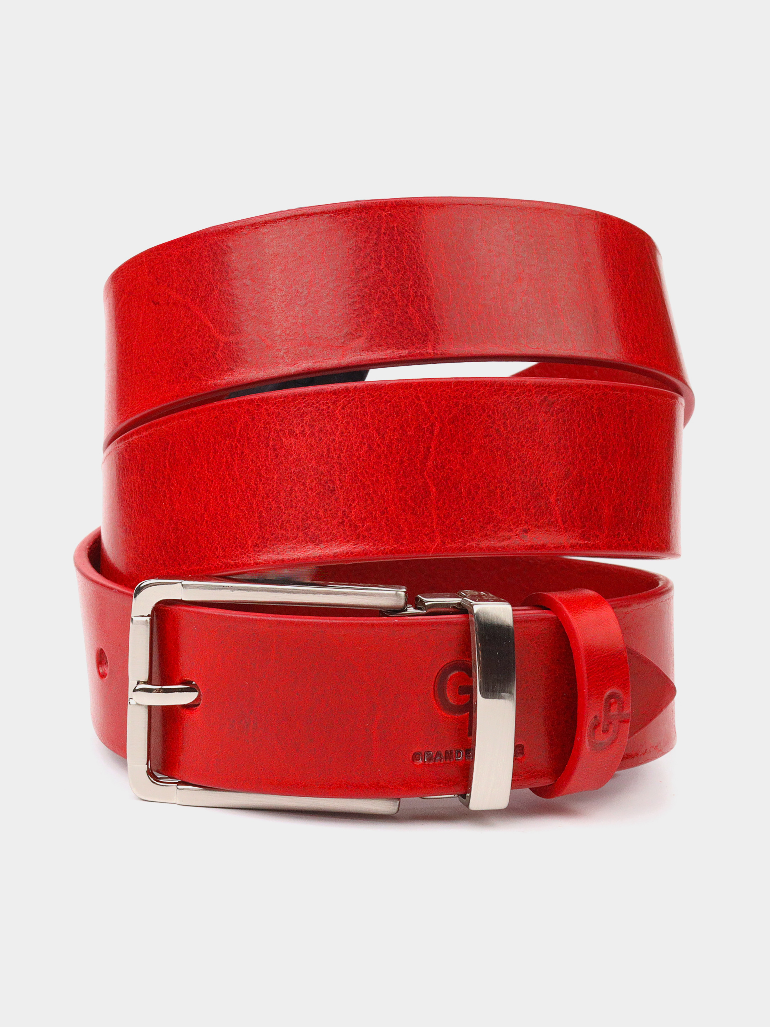 Довжина ременя - 120 см, Матеріал - натуральна шкіра, червоний