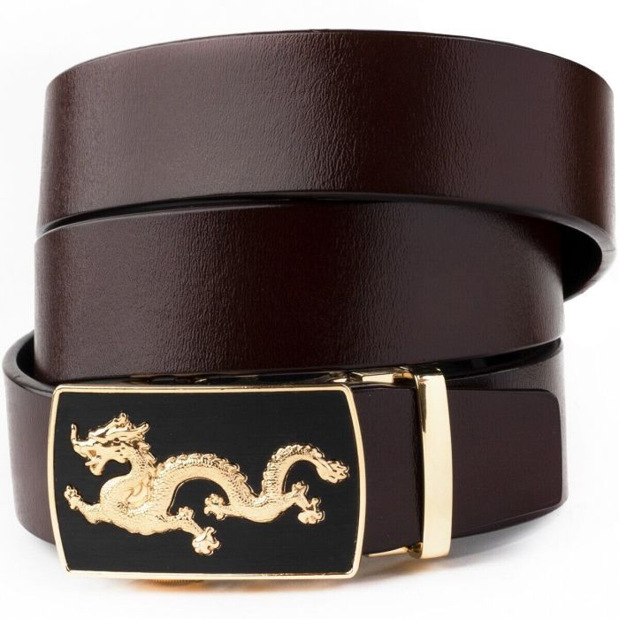 Ремінь Vintage Чоловічий золотий дракон Коричневий (20259) 20259